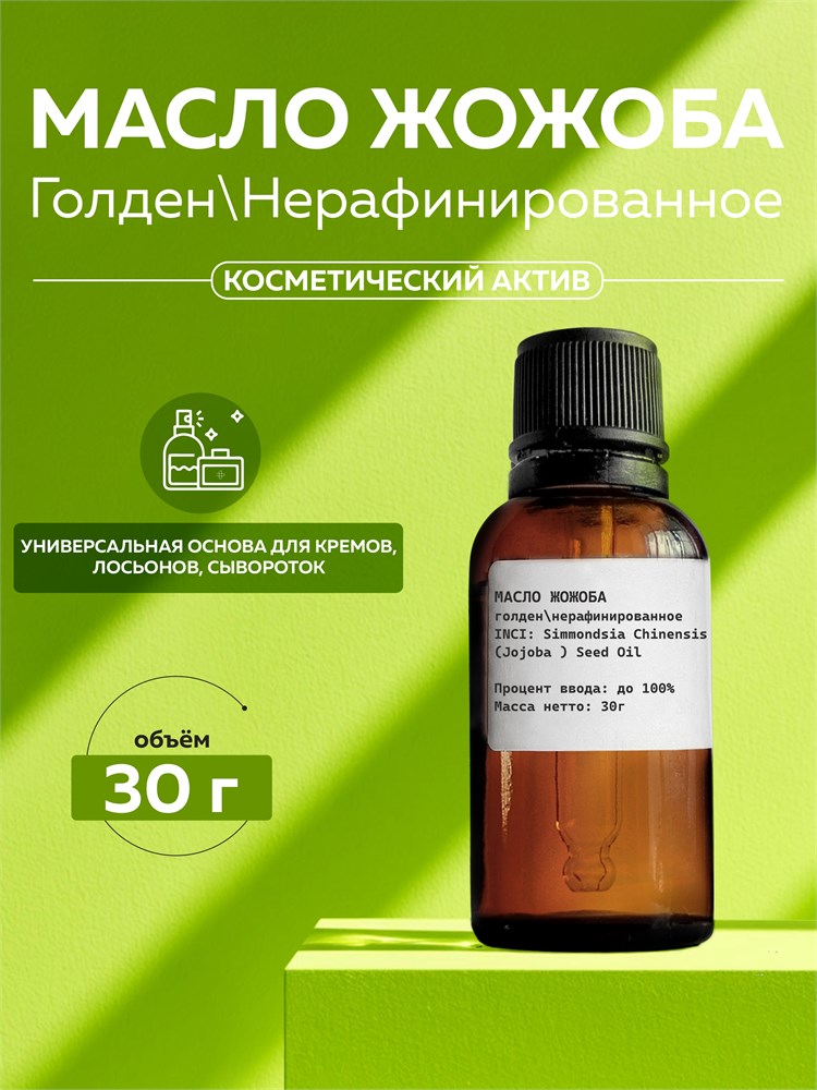 -масло применяют как в чистом виде, так и в качестве биологически активного компонента в косметической продукции. В качестве ингредиента масло жожоба применяется в косметических средствах для тонких, ломких и поврежденных волос, в продуктах с регенерирующими свойствами для поврежденной или морщинистой кожи, особенно вокруг глаз, в гигиенических кремах для тела, в губных помадах, в кремах для рук-в практике его применения есть особенности: на небольшие участки кожи можно наносить чистое масло, а при воздействии на большие поверхности рекомендуется использовать 10% раствор.