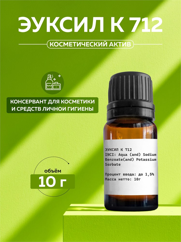 Эуксил К712 – консервант для косметики и средств личной гигиены, промежуточный препарат на основе таких консервантов как сорбата калия и бензоата натрия.