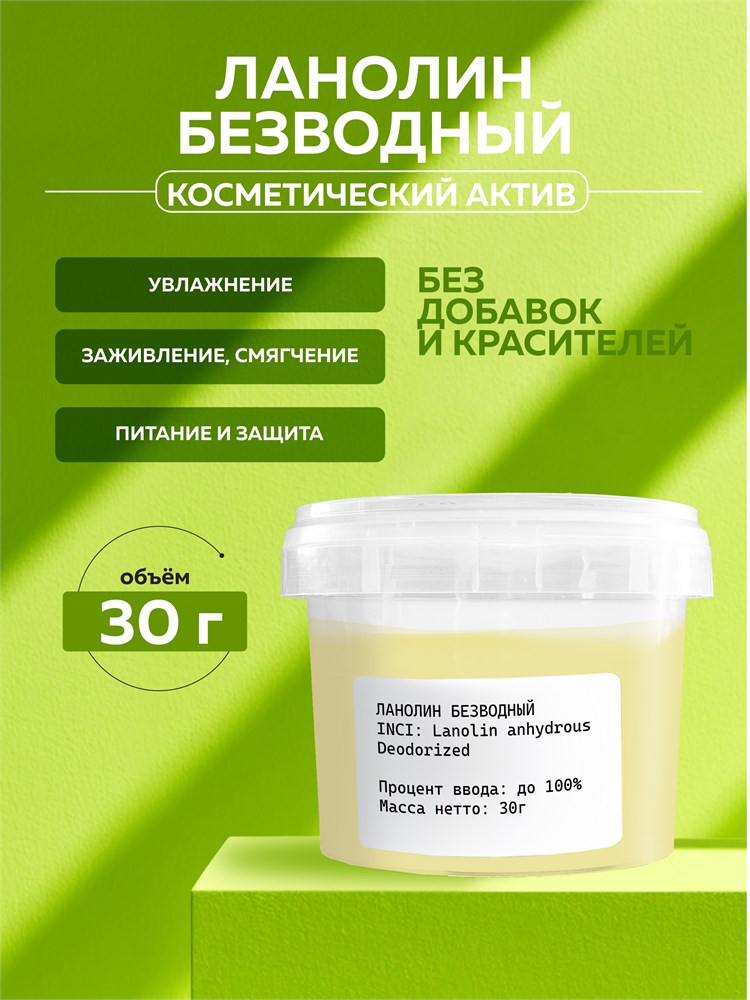 Ланолин безводный - это натуральный животный воск, шерстяной воск, получают путем вываривания жира из шерсти овец.