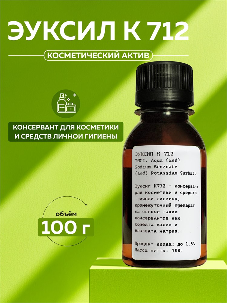 Эуксил К712 – консервант для косметики и средств личной гигиены, промежуточный препарат на основе таких консервантов как сорбата калия и бензоата натрия.