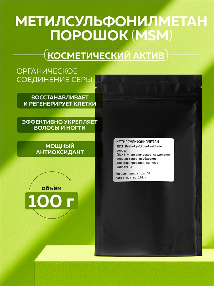 Метилсульфонилметан (МСМ) — органическое соединение серы, которое необходимо для формирования синтеза коллагена. Оно представляет собой белый кристаллический порошок без запаха и вкуса.