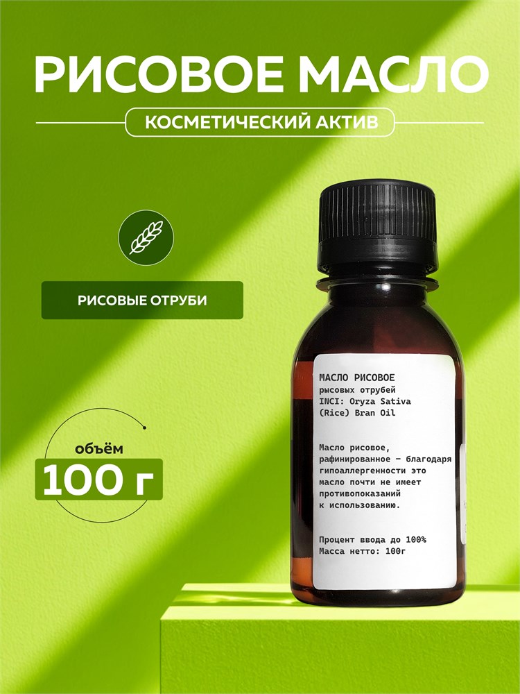 Масло рисовых отрубей имеет желтый цвет и естественный легкий аромат. Невзирая на то, что это масло не так известно, как, например, оливковое или кунжутное, оно имеет достаточно широкое применение в косметологии. Обычно его применяют в составе смесей, но не более 40%.